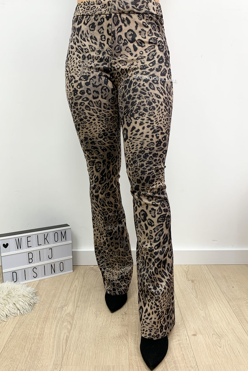 BEIGE - 'GABY FLARE' - SUEDINE LEOPARD PRINT FLARED PANTS