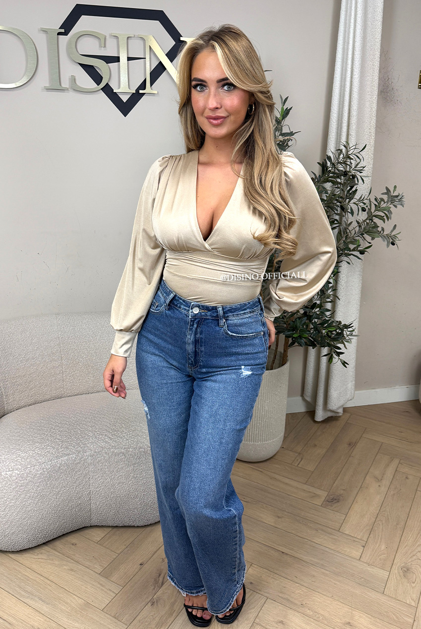 BEIGE - 'LIVIA BODY' - SILKY RUCHED STRETCH BODYSUIT