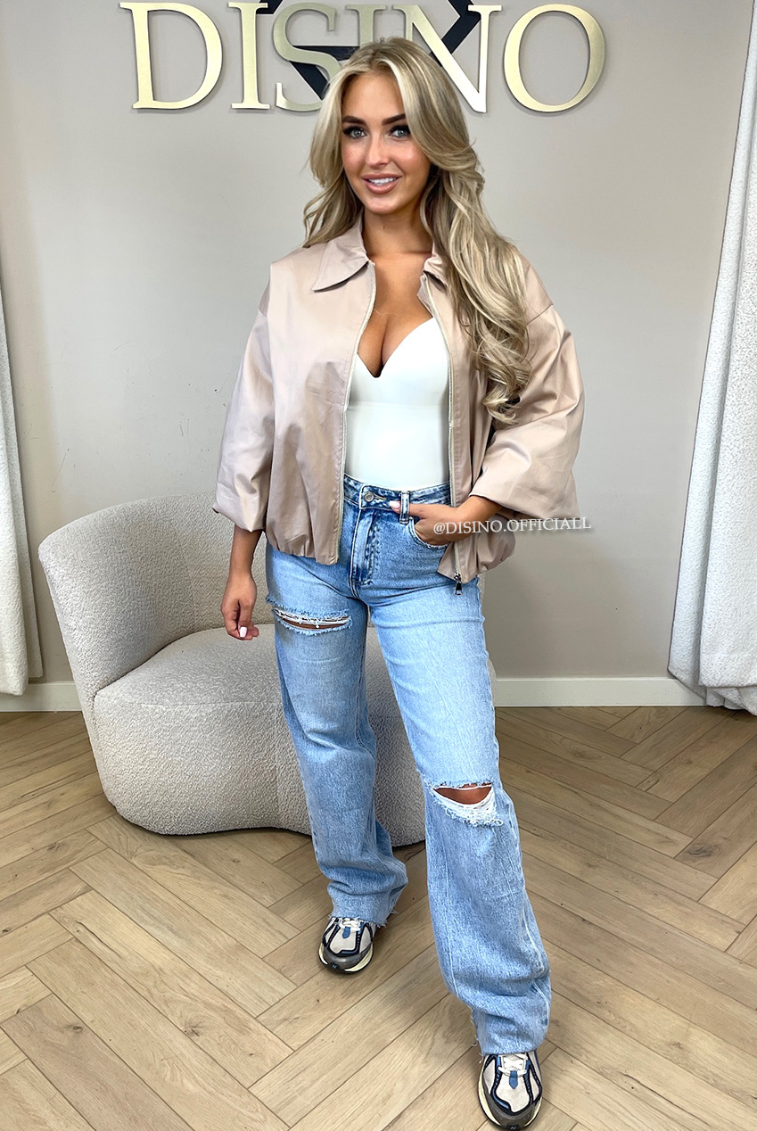SEO-Zoektermen: beige bomberjack dames, oversized bomber jacket, classy bomber jacket, casual jas dames, DISINO jas dames, streetstyle jas dames, comfortabele jas dames
