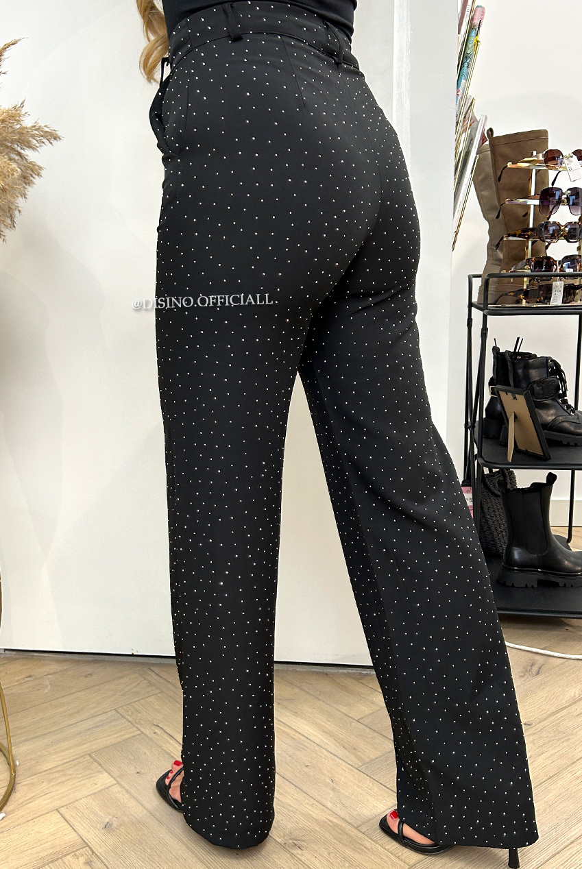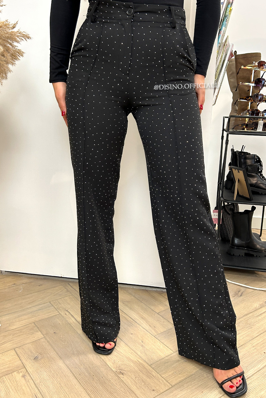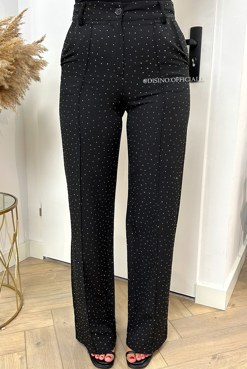 PERFECT BUT THAN BETTER! Onze welbekende KIANA pants met de perfecte pasvorm valt high waist dit keer volledig bewerkt met steentjes. WE LOVE IT! Combineer de pantalon met onze DIAMONDS BLAZER voor de volledige look. Ons model is 1.68m en draagt maat S.