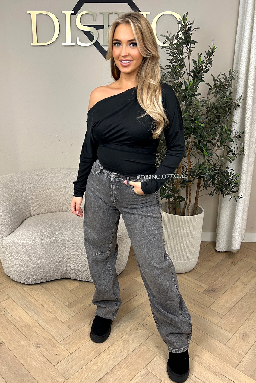 BLACK - 'MARLEY TOP' - ASYMMETRIC LONG SLEEVE TOP