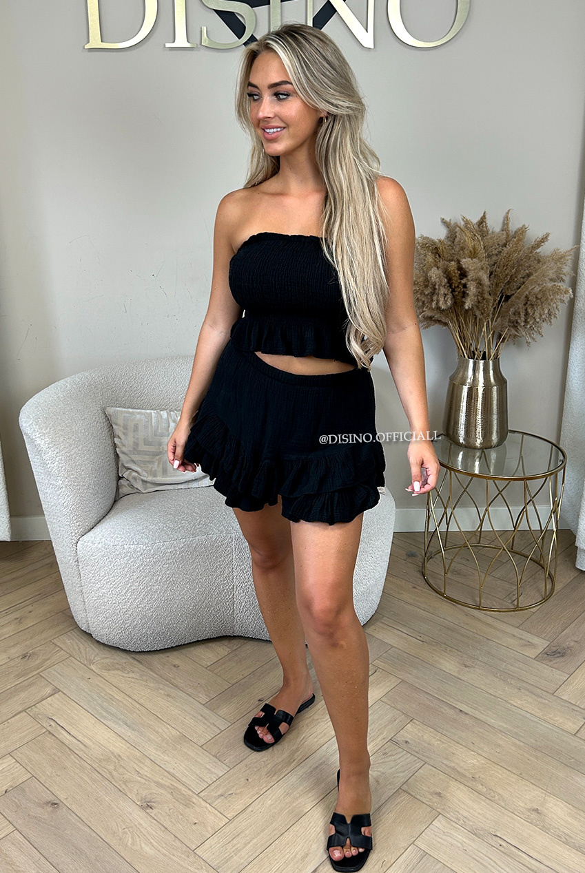 Recente artikelenBekijk productBLACK - 'JESSY SET' - STRAPLESS MOUSSELINE WAFFLE COTTON TOP + SKORT SET€39,99
