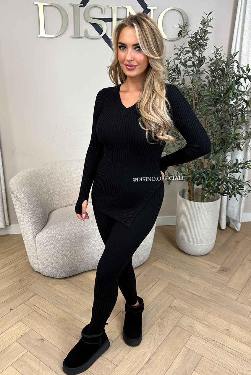 JEANS BLUE - 'LISA' - BASIC RIBBED V-NECK TWO PIECE SET