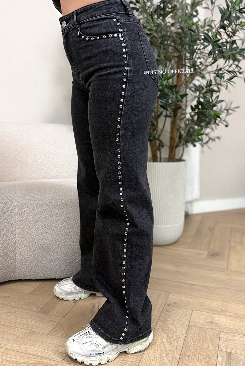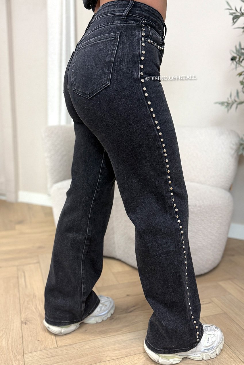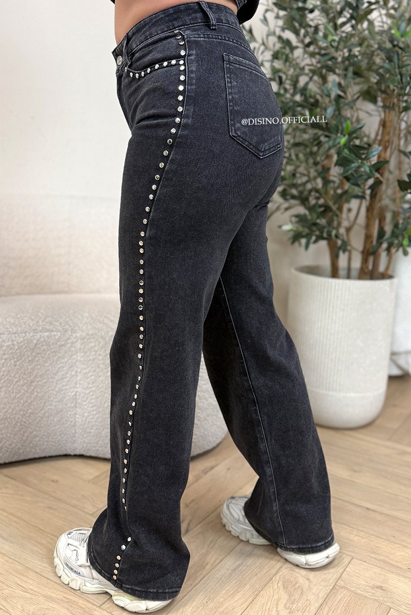 BLUE - 'RAVEN JEANS' - STUDS EXCLUSIVE STRETCH WIDE LEG JEANS