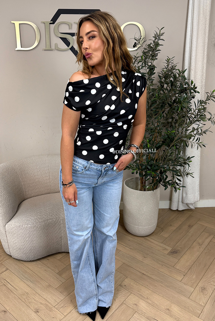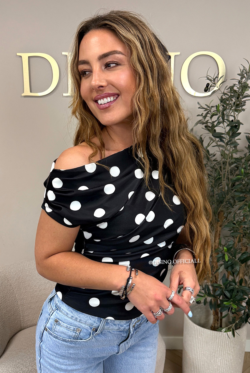 CHOCO/WHITE - 'PIPER TOP' - POLKADOT OFF-SHOULDER TOP