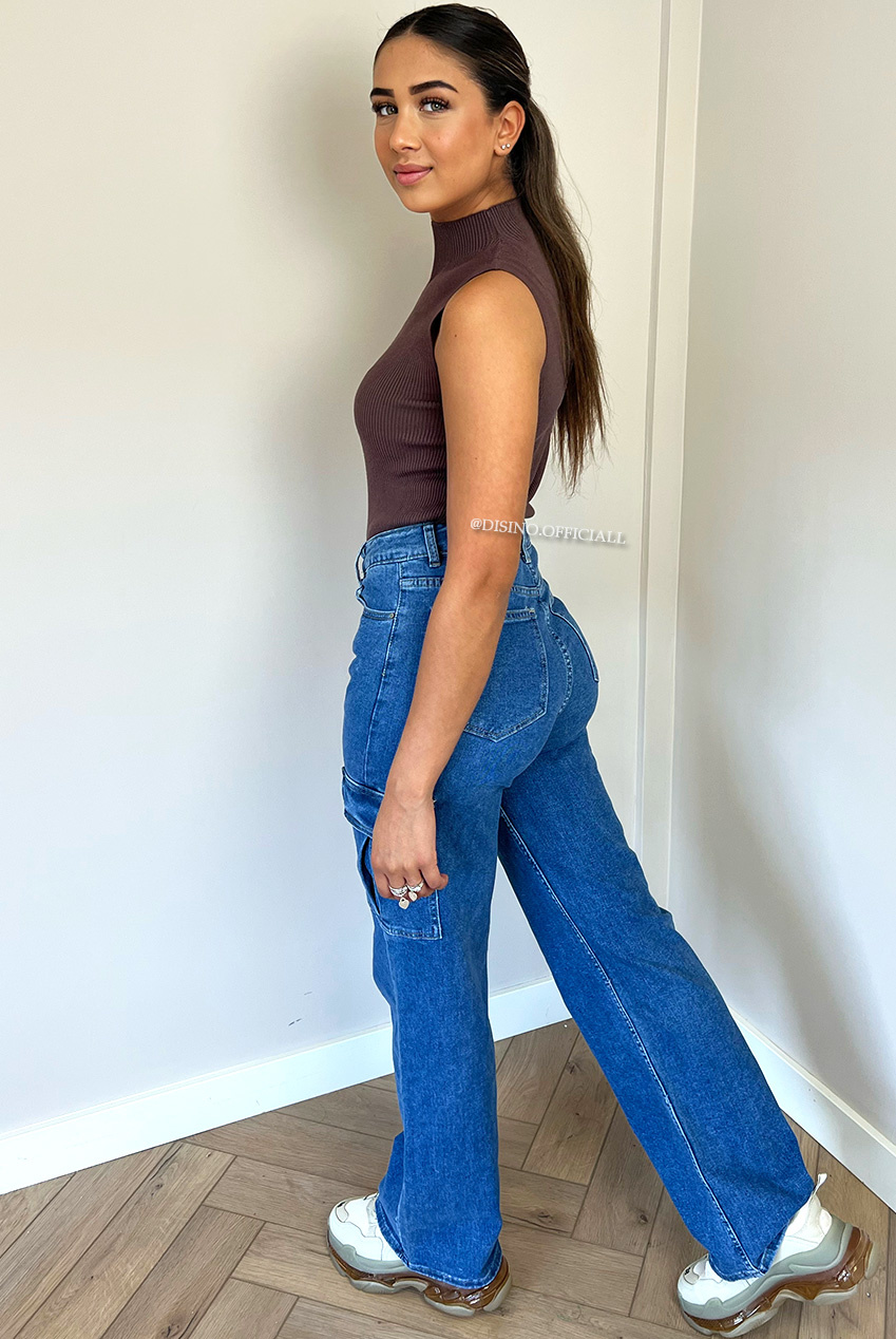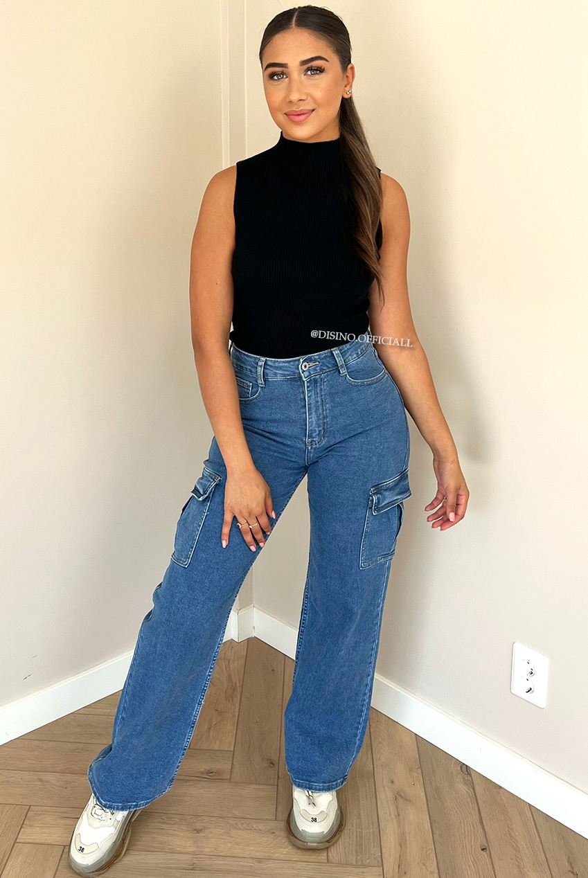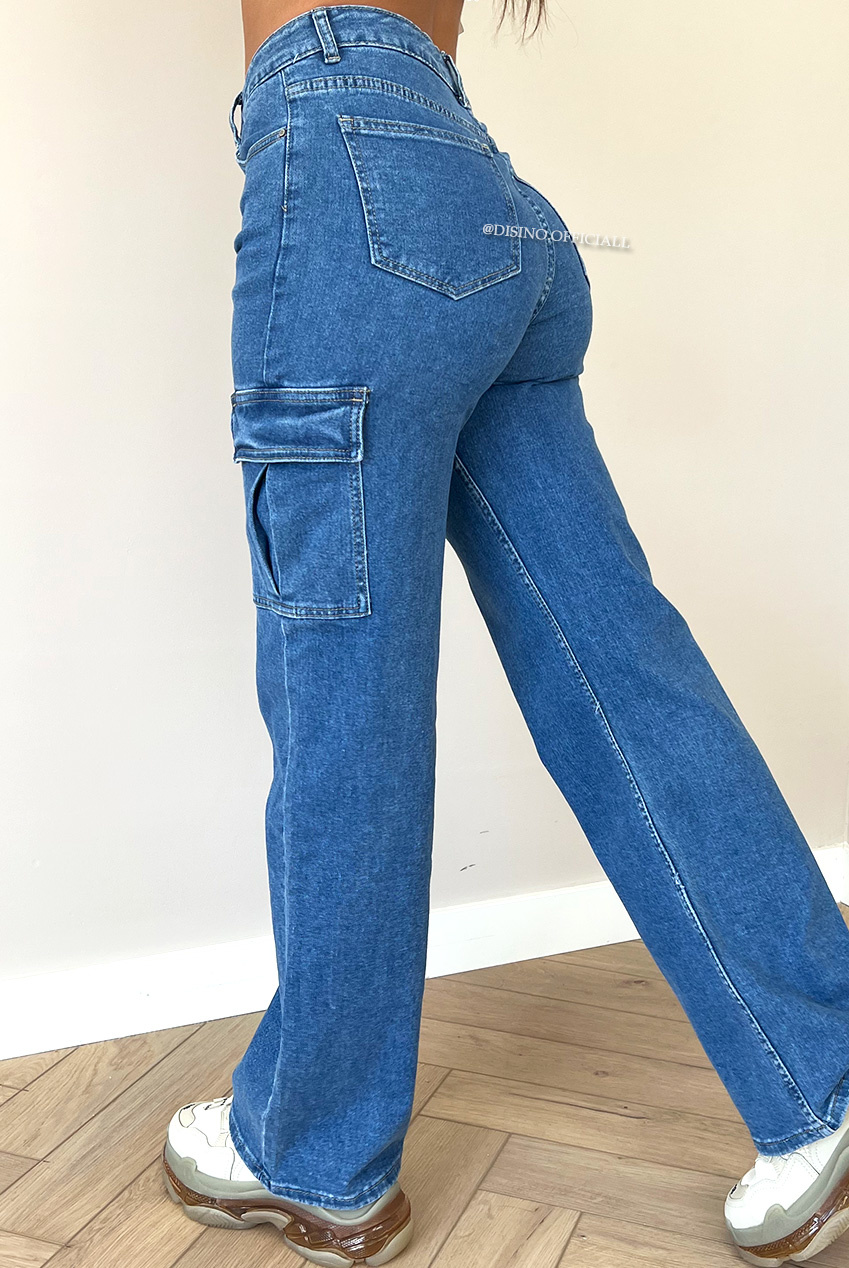 BLUE - 'DENIM CARGO' - STRETCH CARGO STRAIGHT LEG JEANS