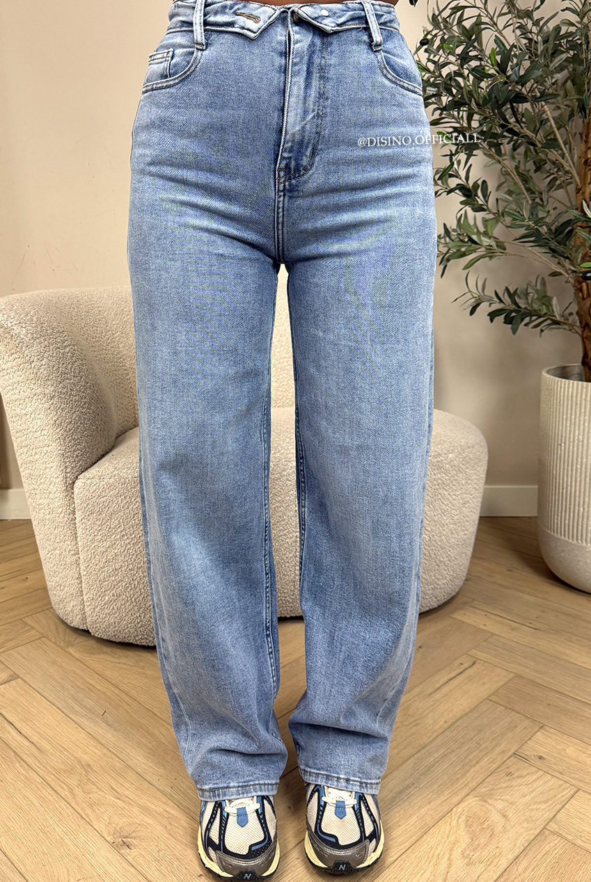BLUE - 'FOLDED JEANS' - SUPER STRETCH FOLDED WAISTBAND WIDE LEG JEANS