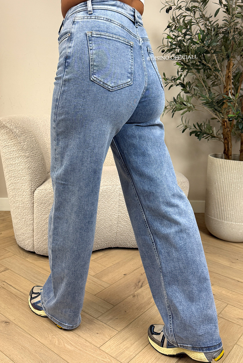 SEO-zoektermen: wide leg jeans dames, folded waistband jeans, super stretch jeans dames, high waist jeans lichtblauw, denim jeans dames, comfy jeans dames, DISINO jeans.