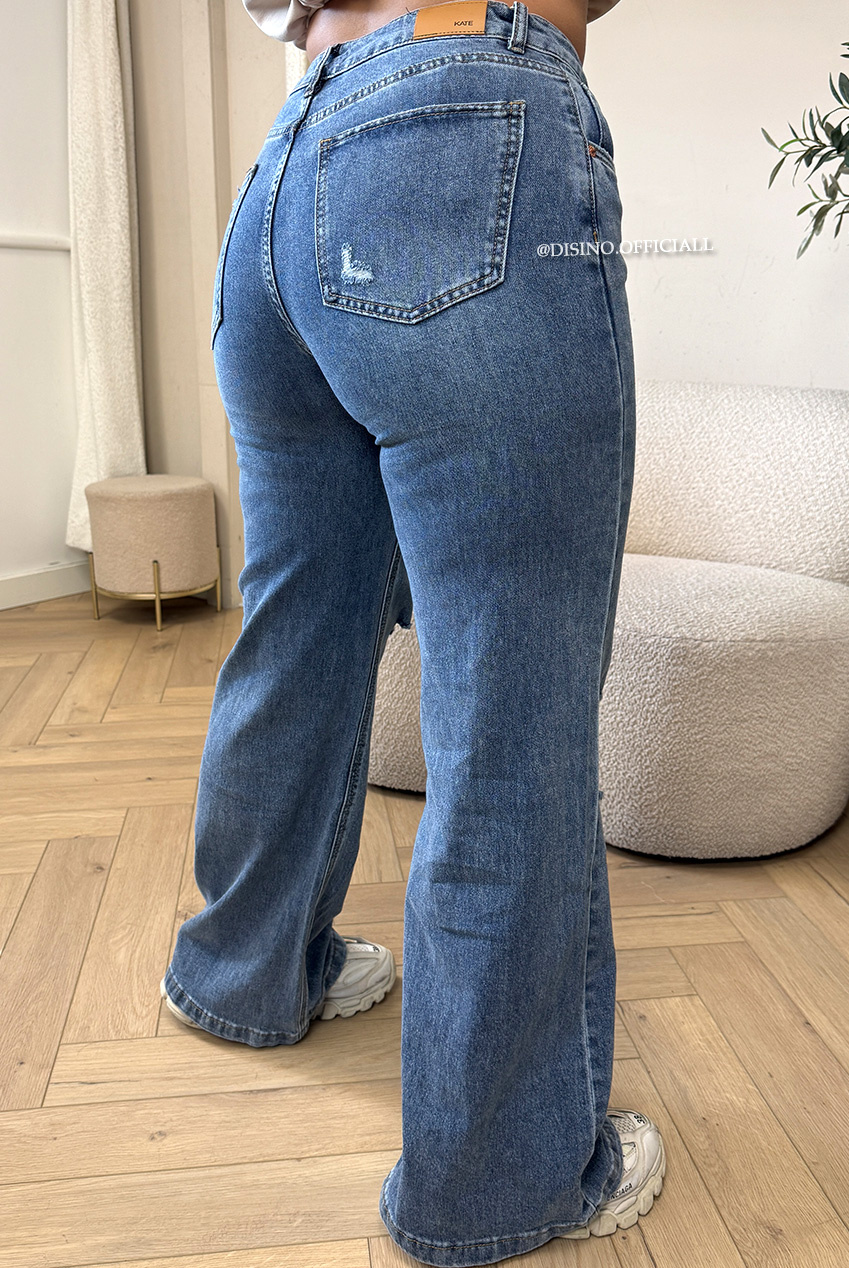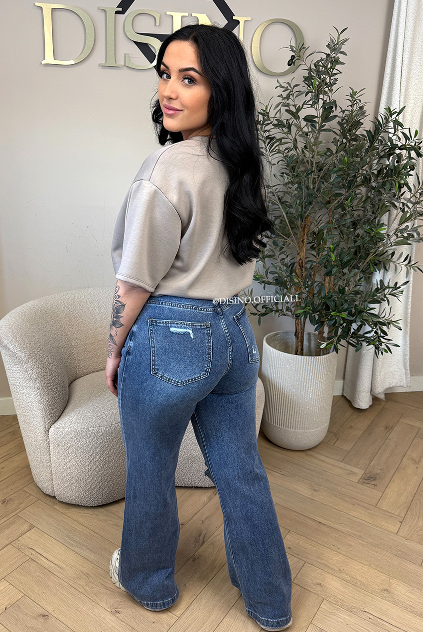 BLUE - 'PALERMO' - SUPER STRETCH RIPPED KNEE WIDE LEG JEANS