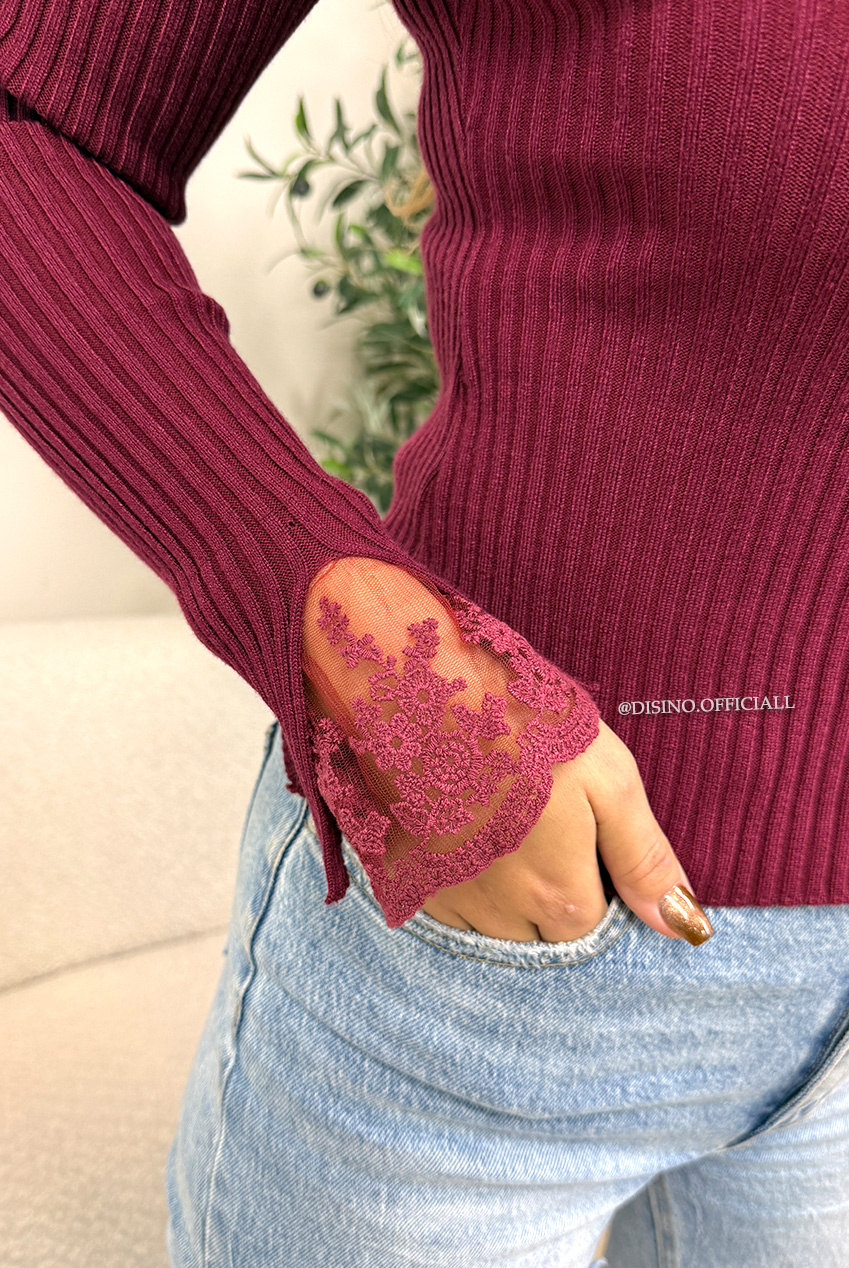 CHOCO - 'CARLYN TOP' - LACE DETAIL RIBBED TOP
