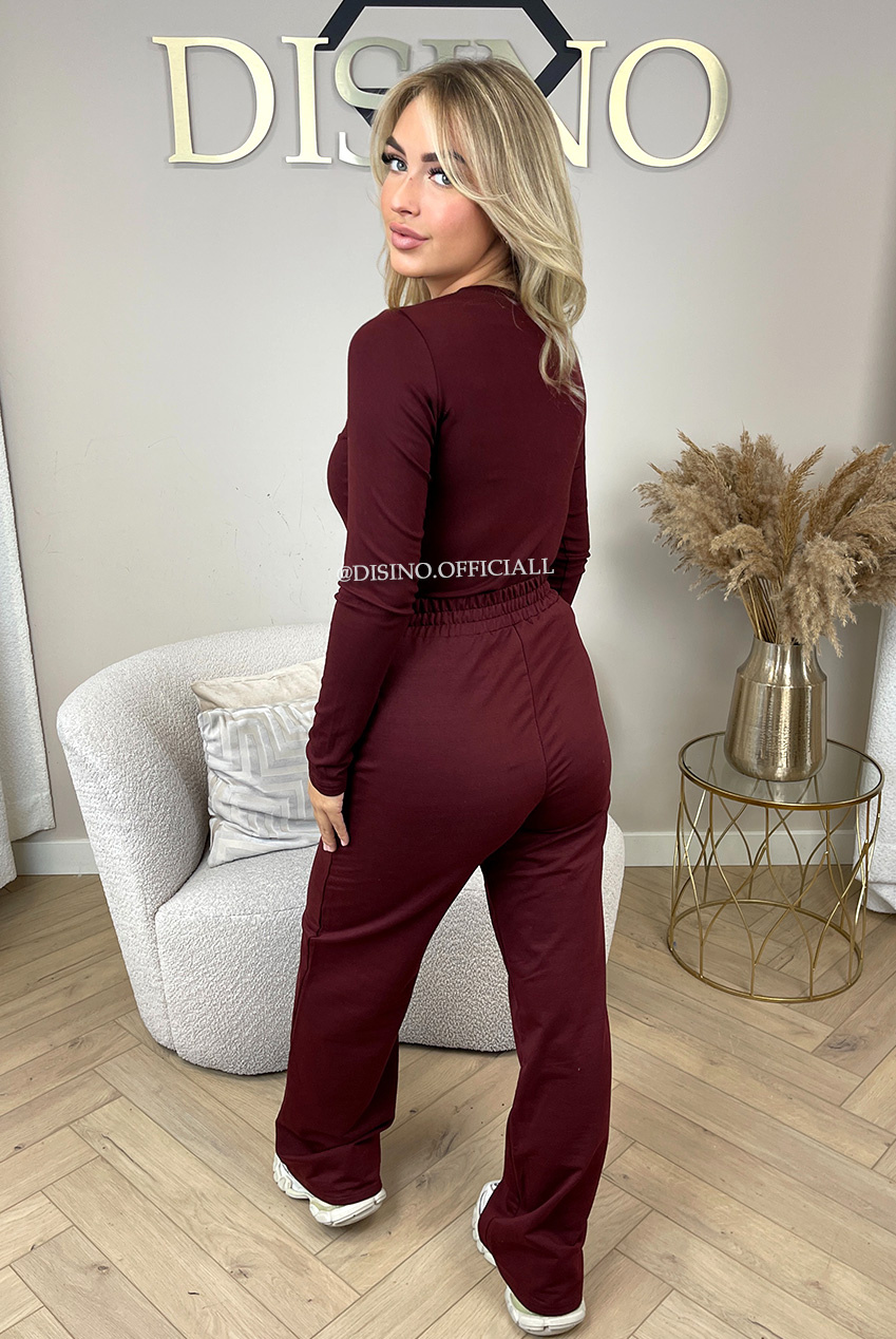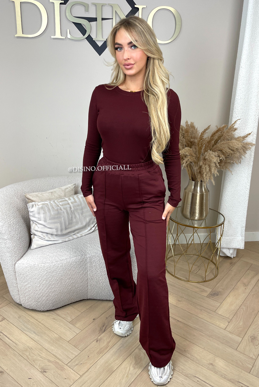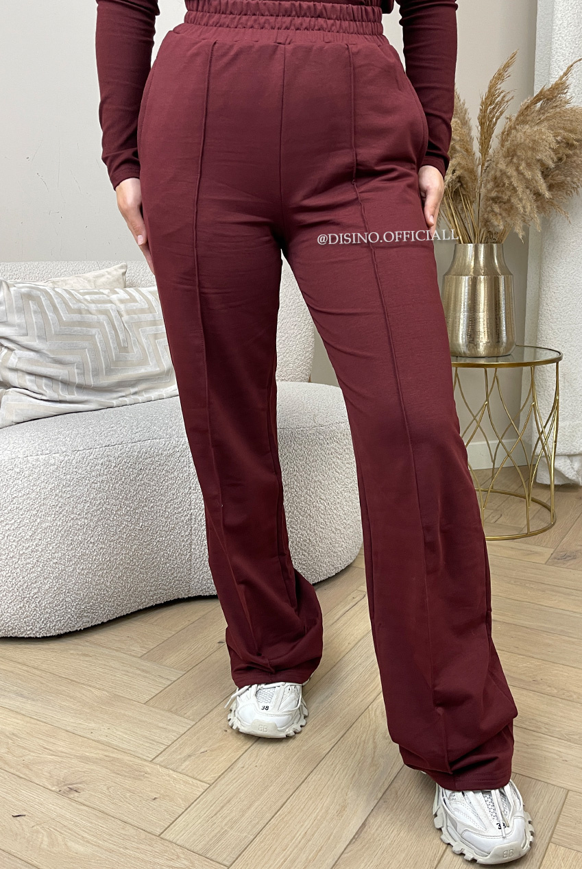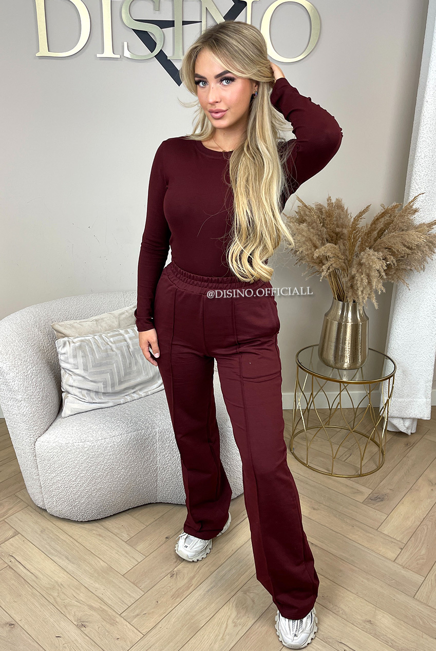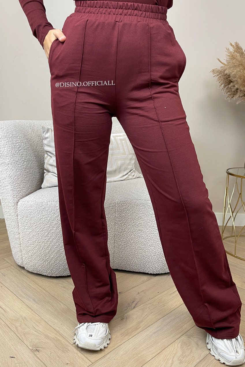 BORDEAUX - 'EVI COMFY PANTS' - PREMIUM QUALITY WIDE LEG JOGGER PANTS