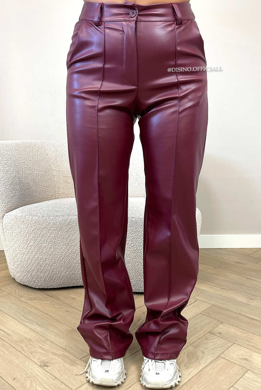 BORDEAUX - 'SKYLA LEATHER' - HIGH WAIST VEGAN LEATHER STRAIGHT LEG PANTS