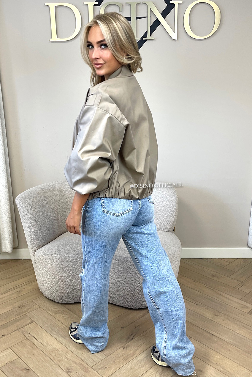 SEO-Zoektermen: Taupe bomberjack dames, oversized bomber jacket, classy bomber jacket, casual jas dames, DISINO jas dames, streetstyle jas dames, comfortabele jas dames