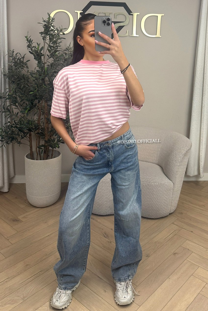 NAVY/WHITE - 'LEONI SHORTSLEEVE TEE' - STRIPED OVERSIZED TEE
