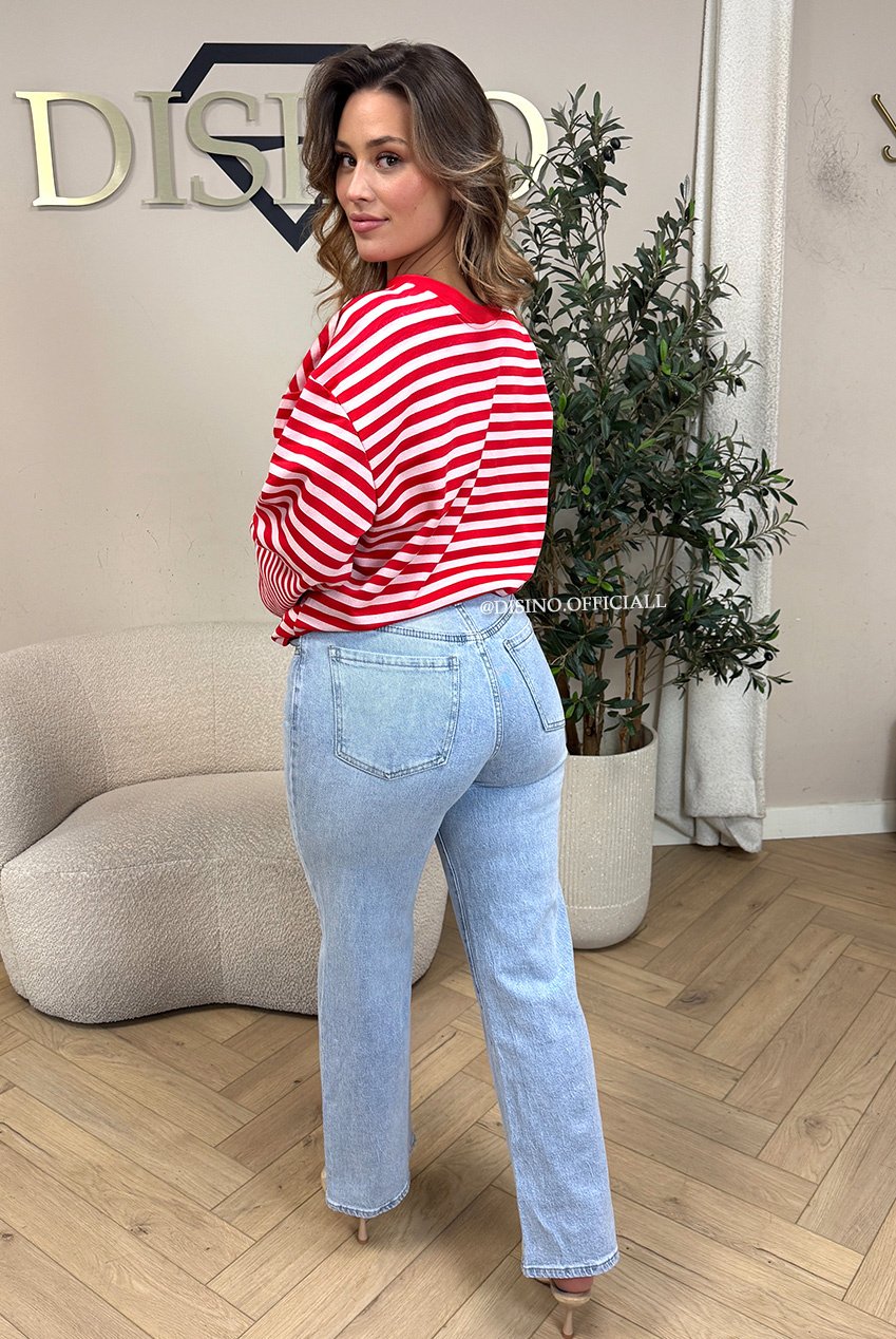 LIGHT BLUE - 'LAGUNA JEANS' - STRETCH HIGH WAIST WIDE LEG JEANS