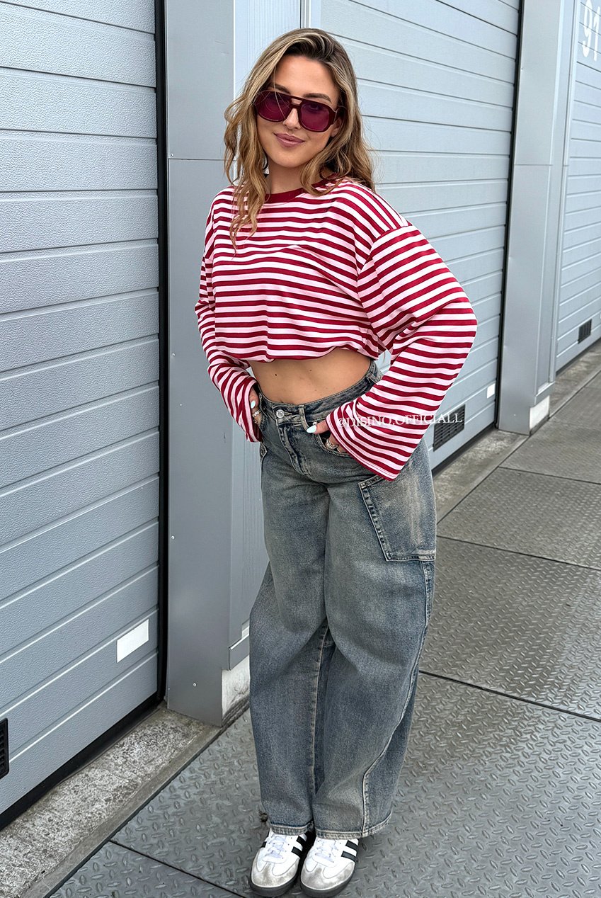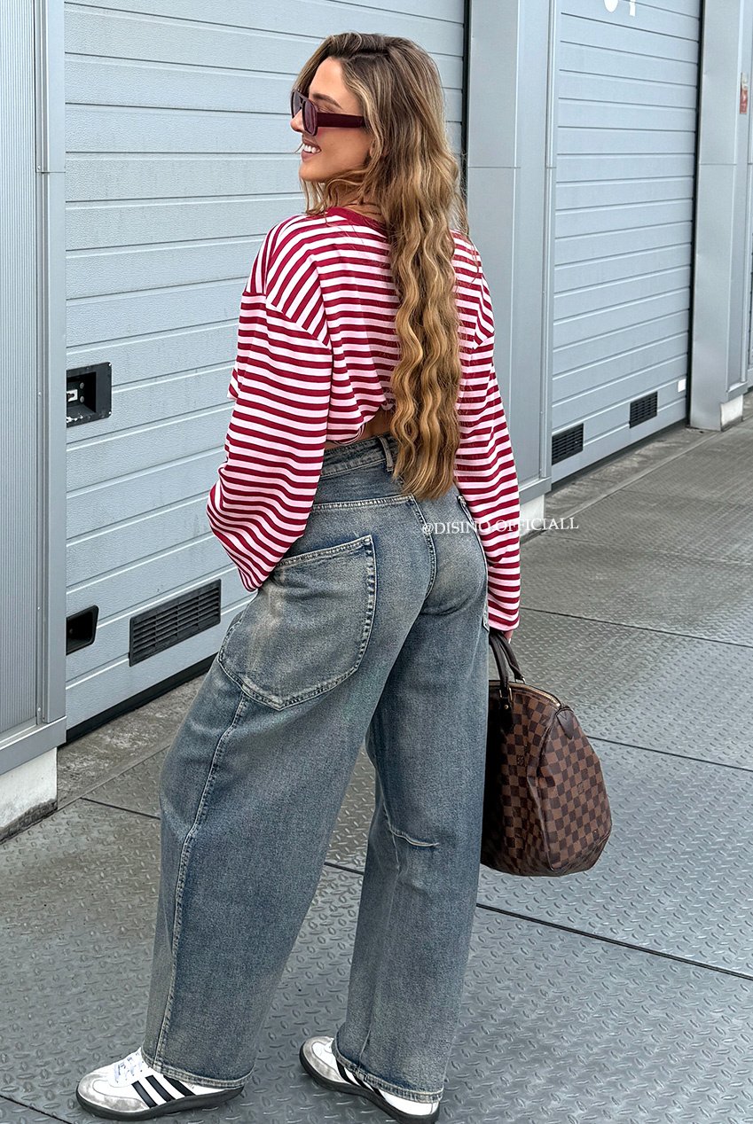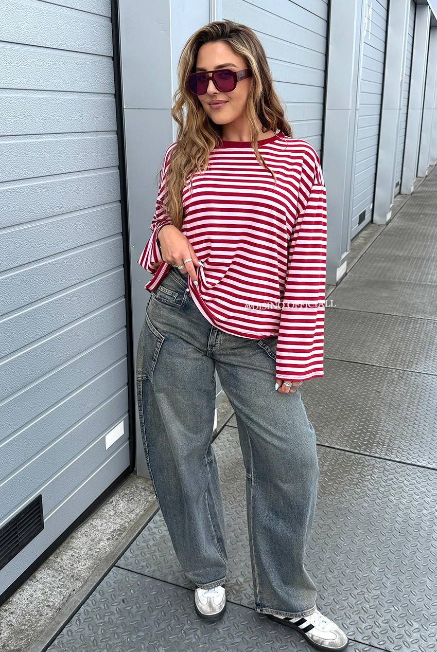 LIGHT BLUE - 'LEONI TEE' - STRIPED LONG SLEEVE TEE