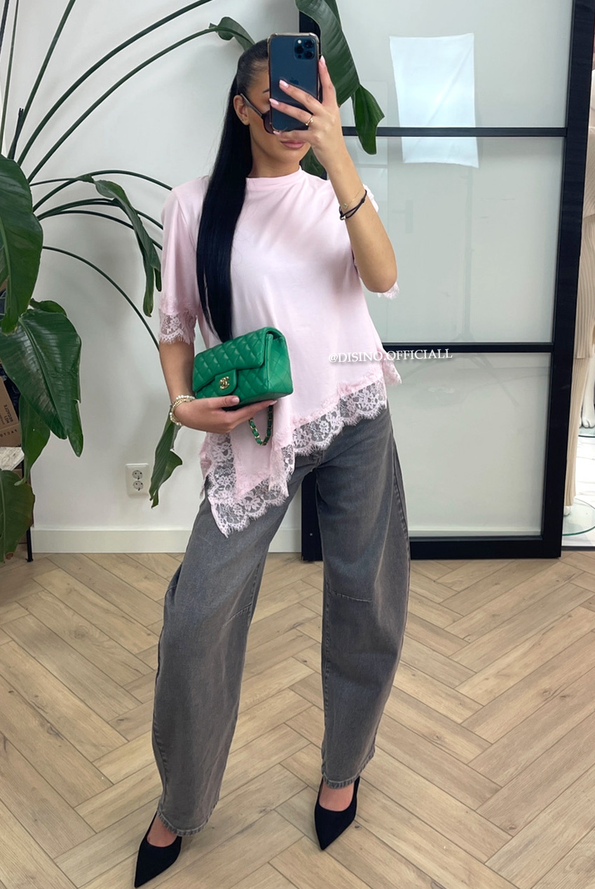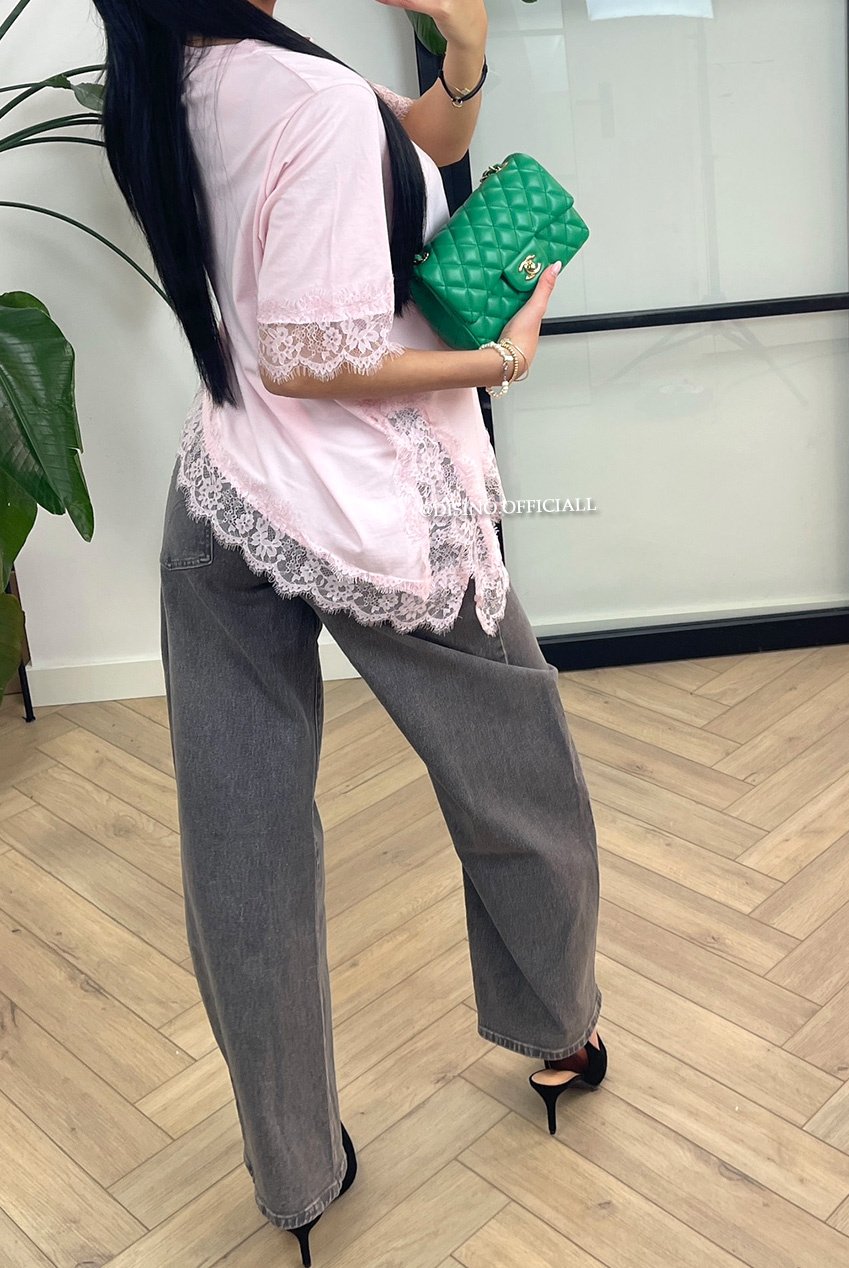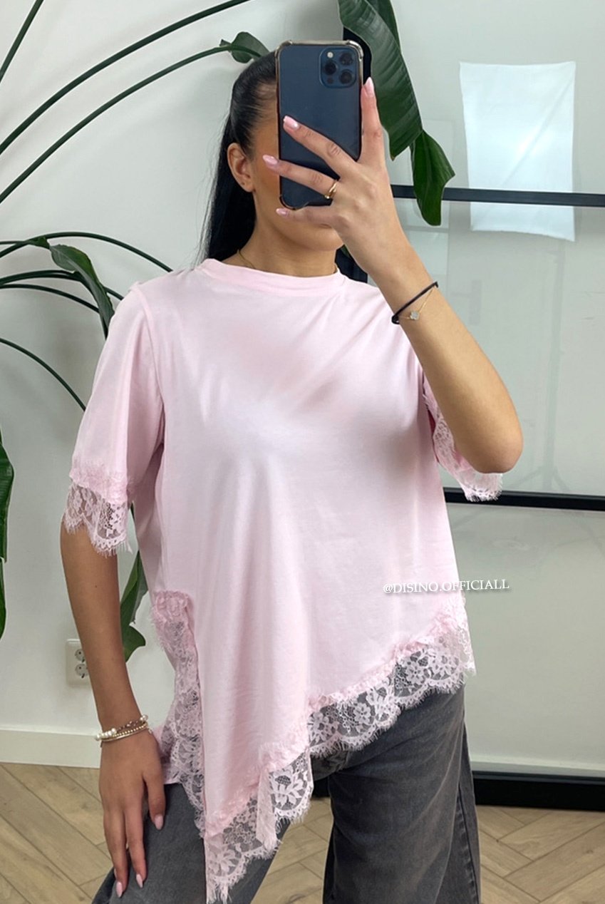 BLACK - 'LINA TEE' - LONG ASSYMETRIC LACE TEE