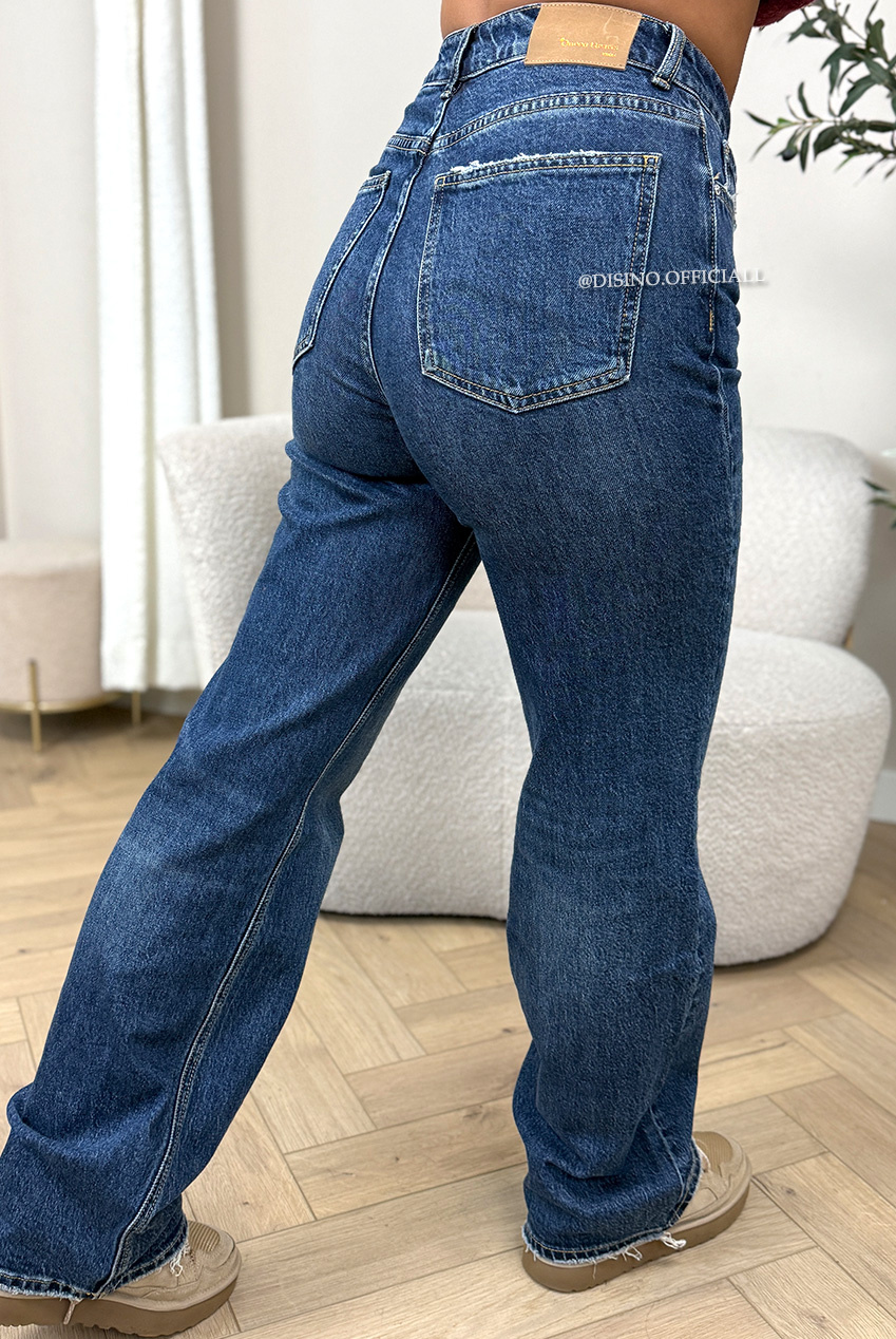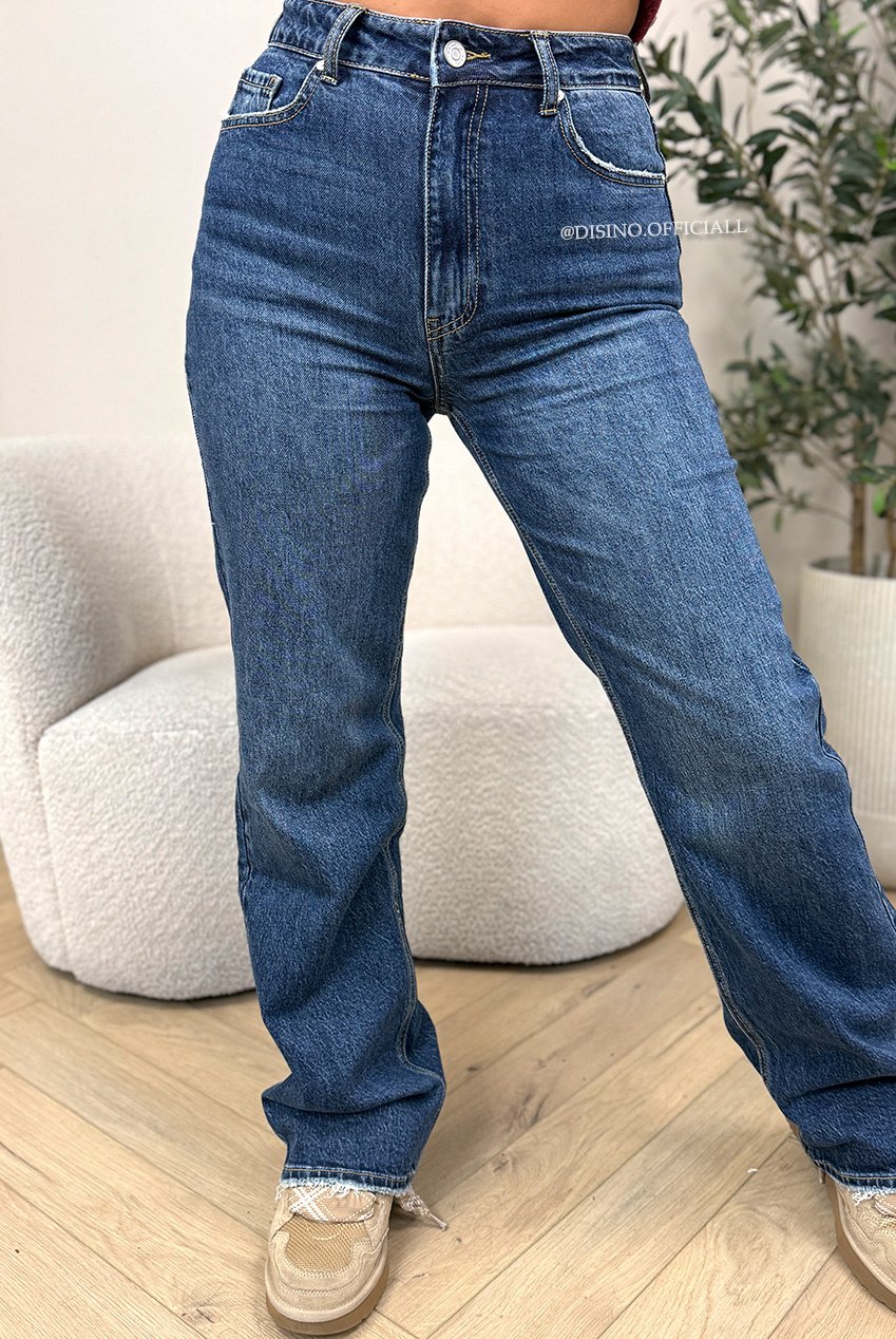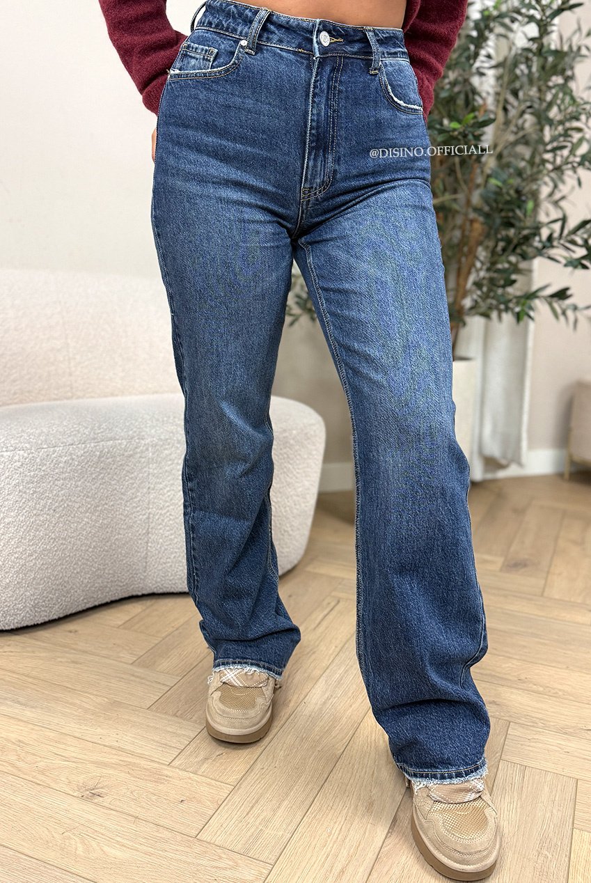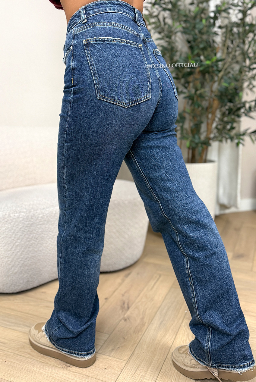 DARK BLUE - 'MEMPHIS' - PERFECT WASHING STRETCH WIDE LEG JEANS