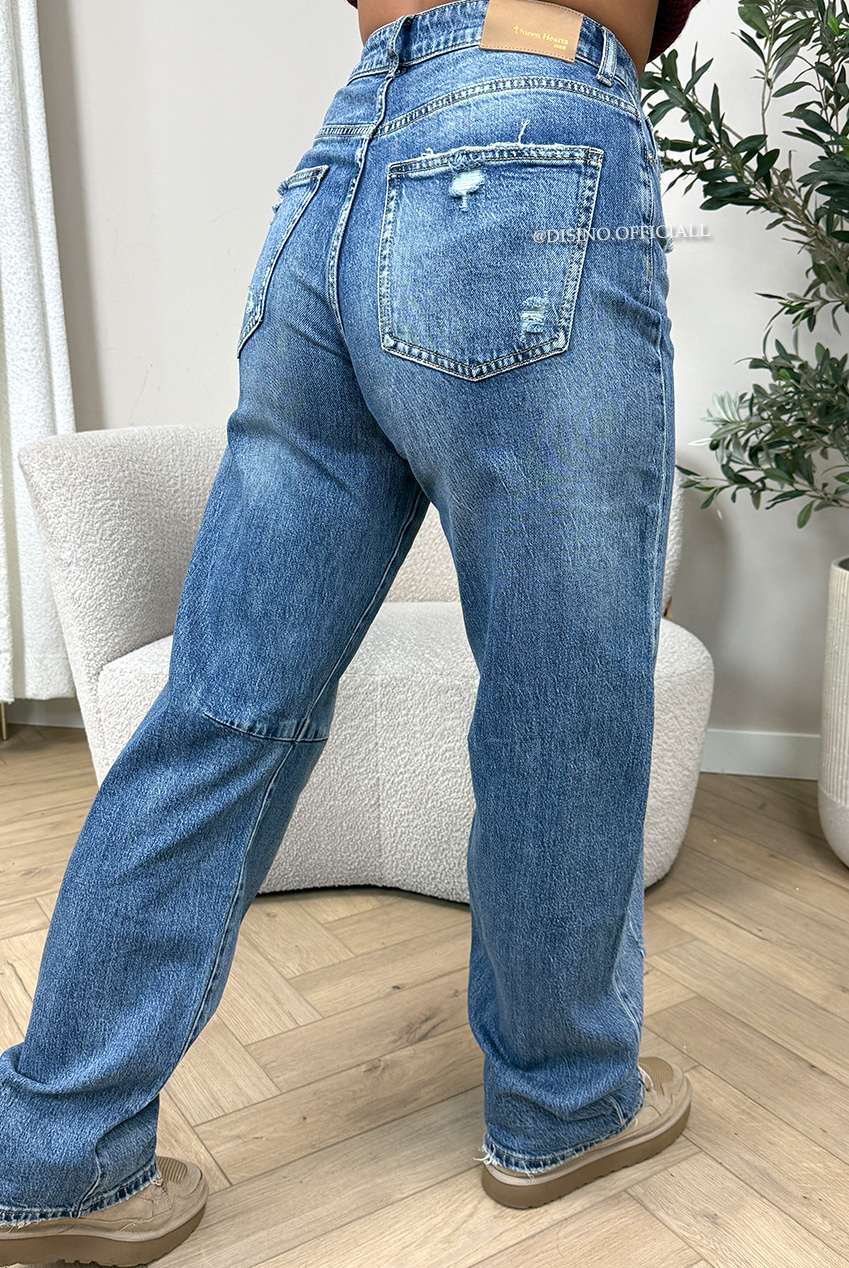 DARK BLUE - 'SEATTLE' - STRETCH DAMAGED BALLOON LEG JEANS
