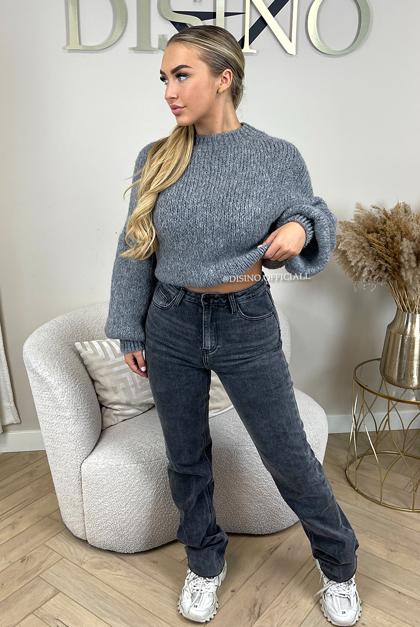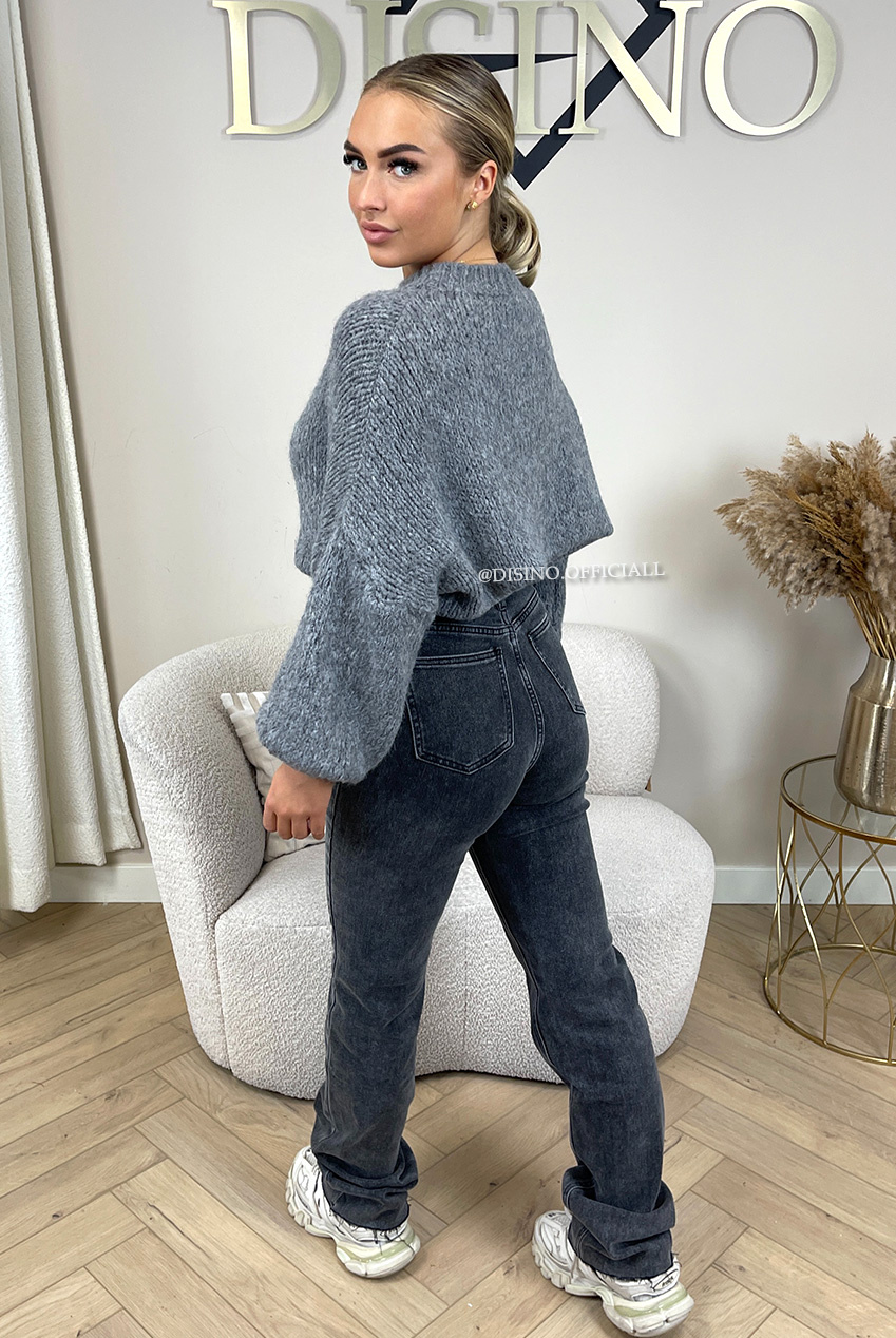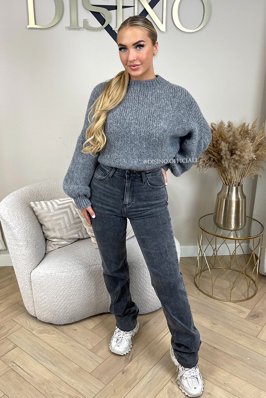 DARK GREY - 'SOPHIA BALLOON SLEEVE' - OVERSIZED PREMIUM QUALITY BELL SLEEVE KNIT