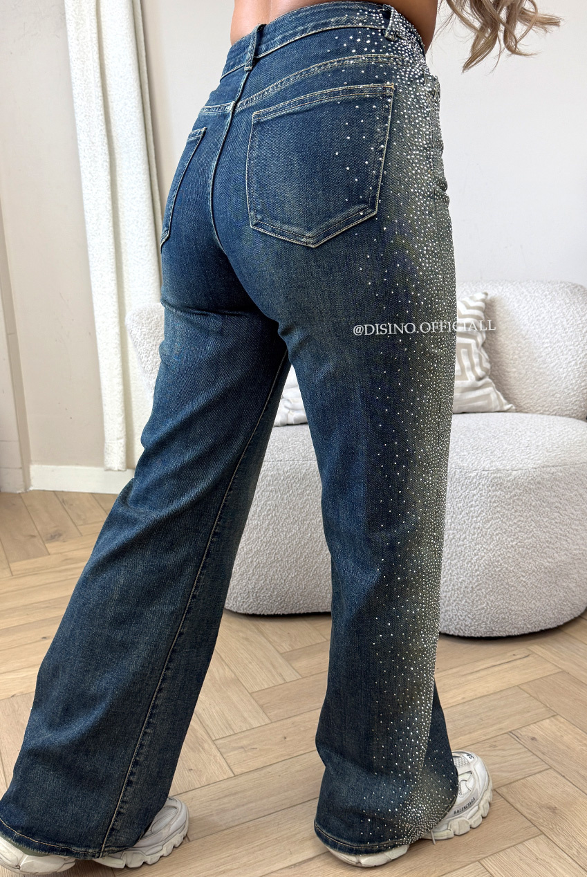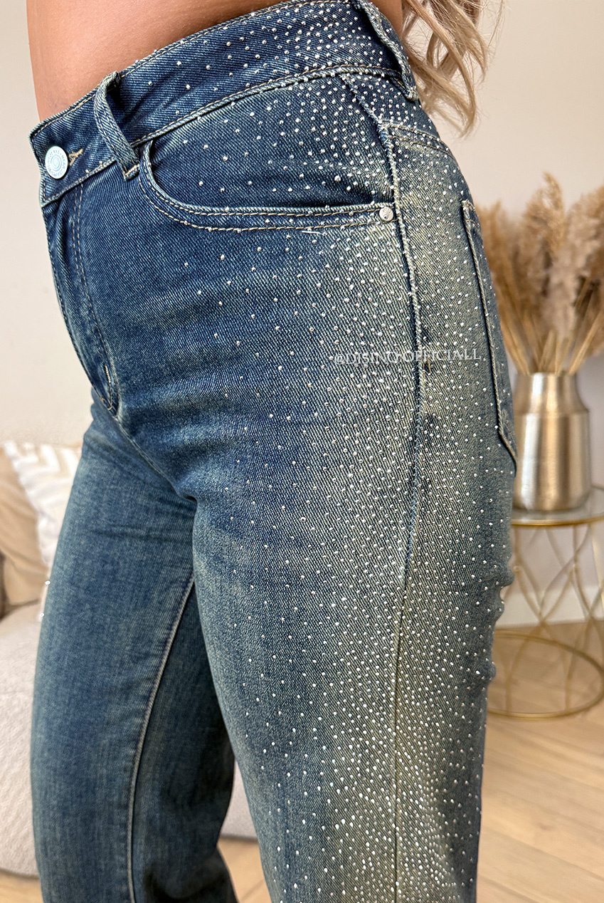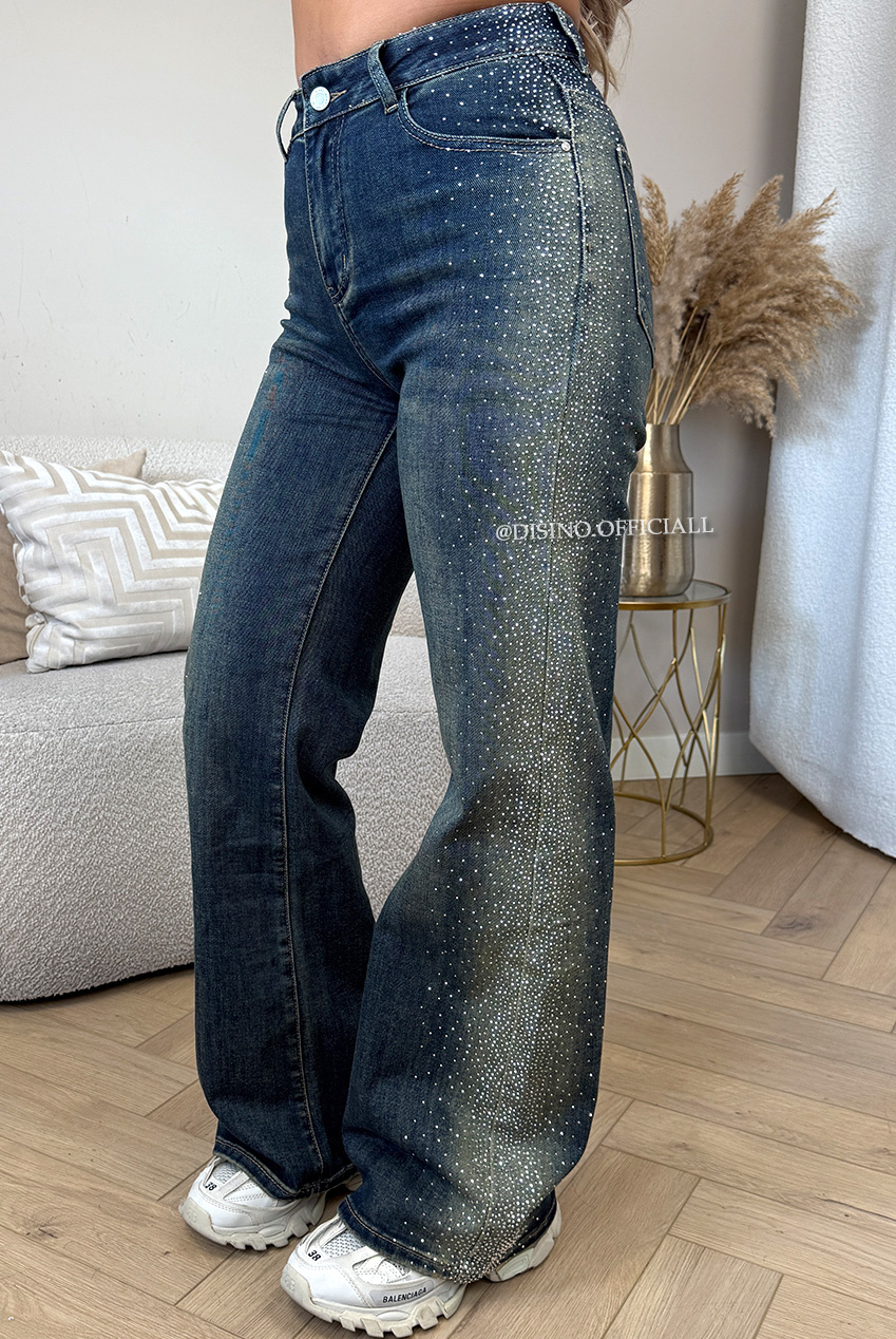DIRTY BLUE - 'PRAGUE' - STRETCH HIGH WAIST DIAMONDS JEANS