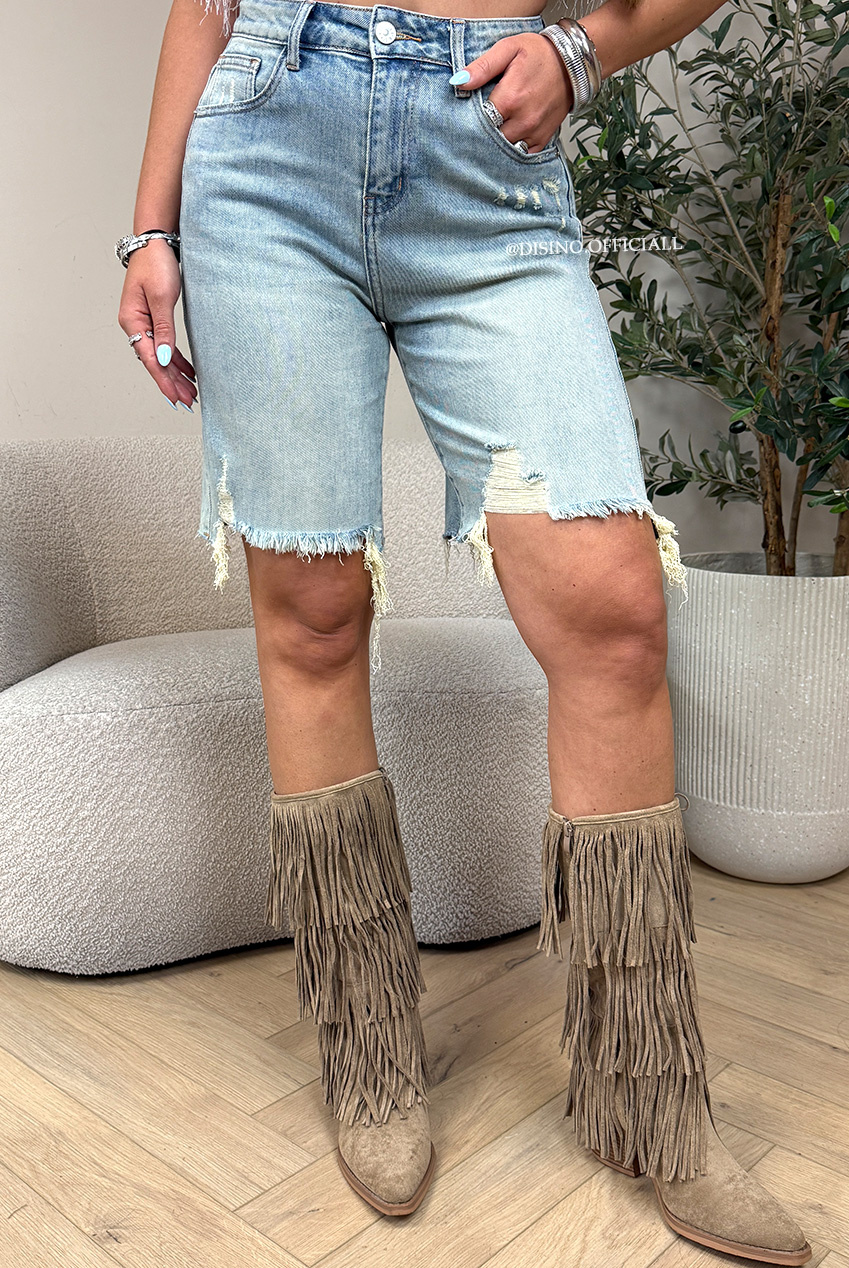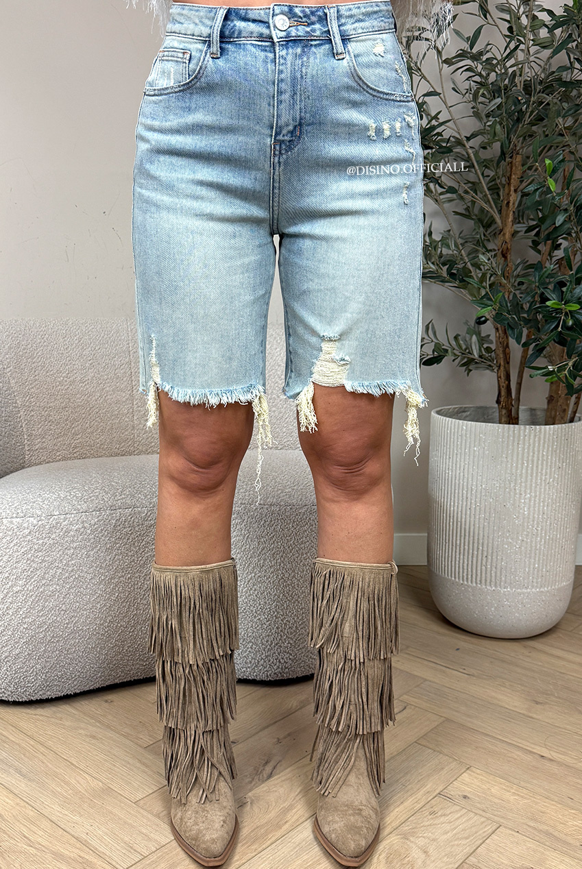 DIRTY BLUE - 'SANDY SHORT' - RIPPED STRETCH DENIM BERMUDA SHORT