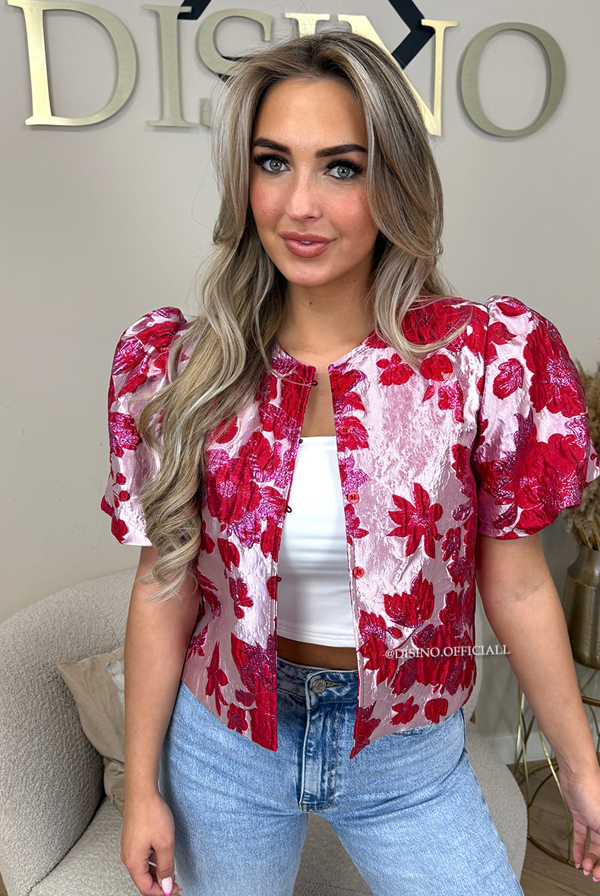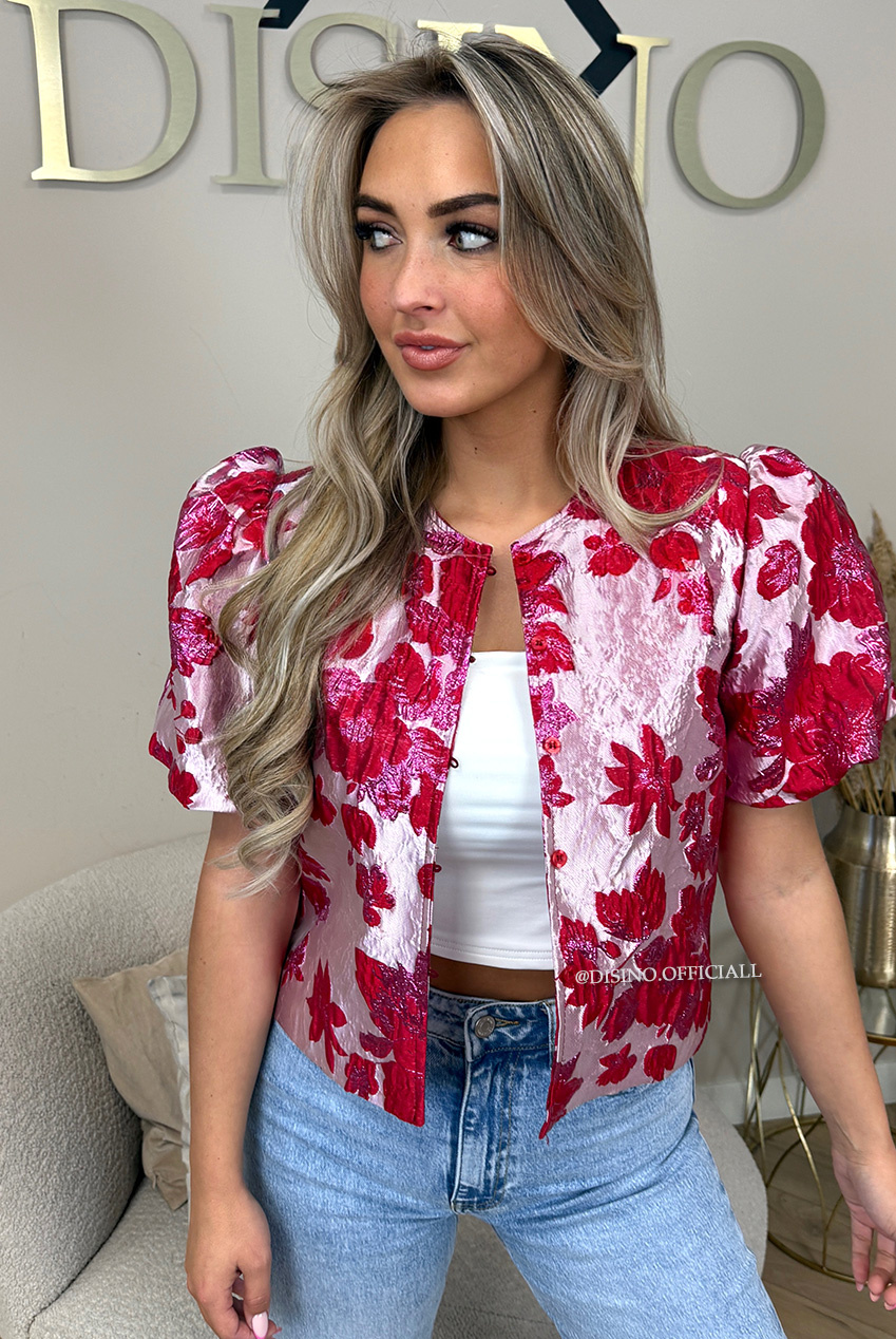 PINK - 'JAIMY TOP' - BUTTON UP EXCLUSIVE JACQUARD PRINT JACKET