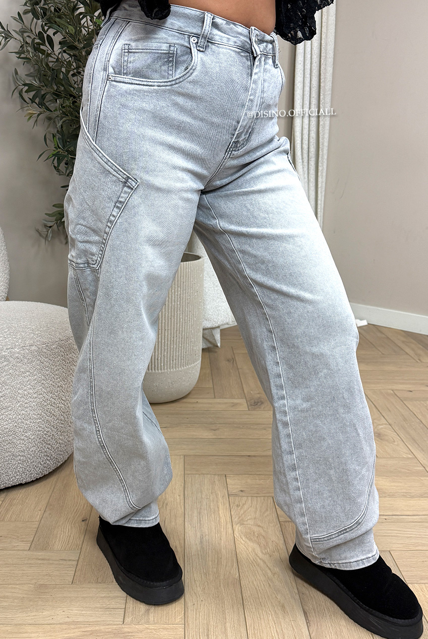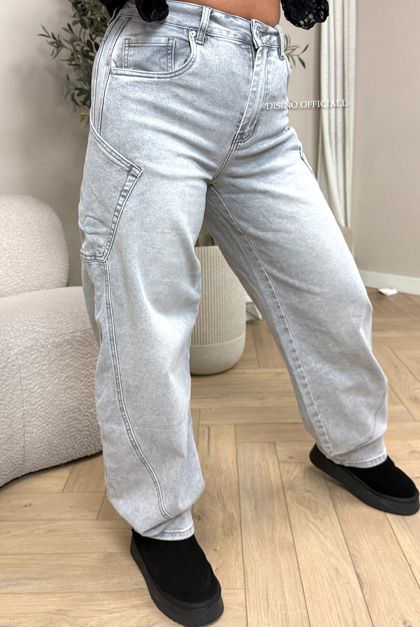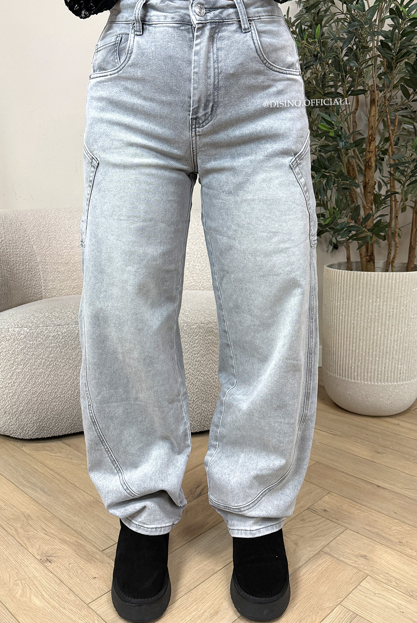 GREY - 'BALVIN JEANS' - SUPER STRETCH VIRAL BALLOON CARGO LEG JEANS