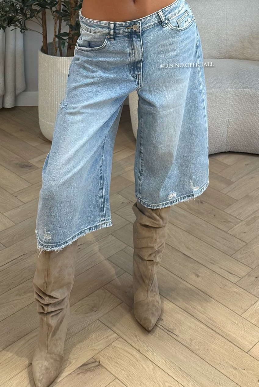 LIGHT BLUE - 'ROWIE BERMUDA' - BAGGY FIT STRETCH SIDE CUT BERMUDA JEANS