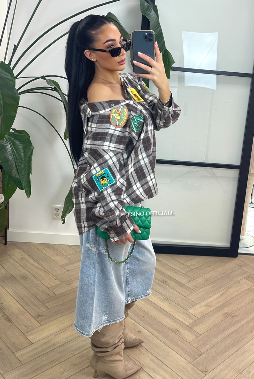 CHOCO - 'JONES' - CHECKED OVERSIZED BOYFRIEND BLOUSE PATCHES
