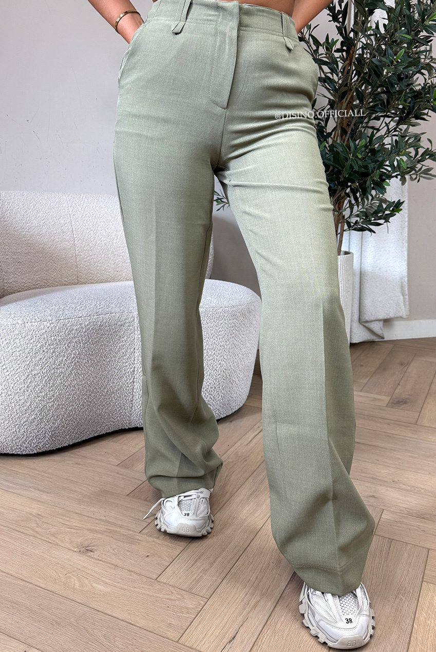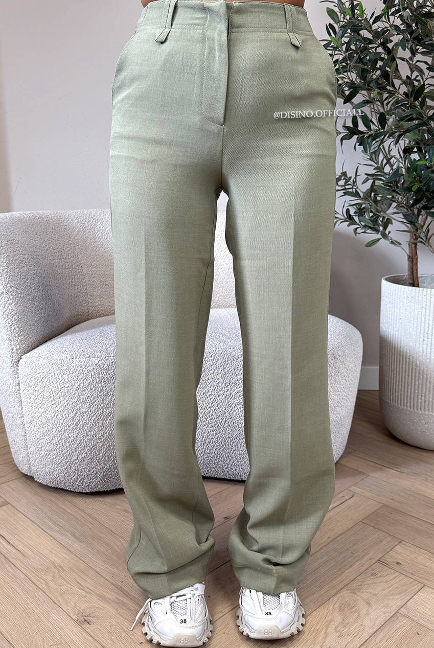SEO-zoektermen: groene pantalon dames, high waist broek groen, stretch pantalon dames, viral broek, rechte pijpen broek, dames pak broek, DISINO ELOISA broek.