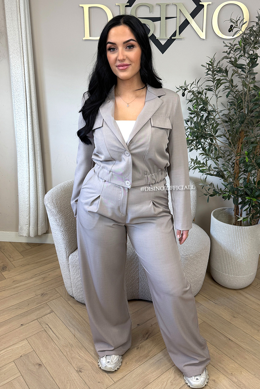 UTILITY CHIC TWO-PIECE SET! De taupe ‘EMILIA’ Set is een stijlvolle cargo co-ord bestaande uit een jacket en pantalon, ontworpen voor een moderne en effortless look. De combinatie van de utility details en de relaxte fit geeft deze set een stoere maar toch vrouwelijke uitstraling. Perfect voor elke dag of een fashionable outfit.