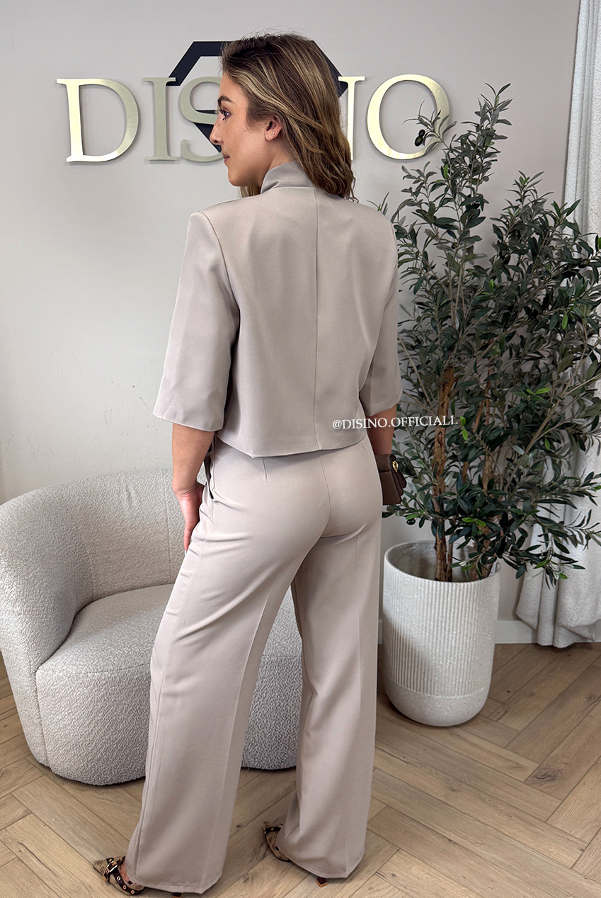 BEIGE - 'VAYEN PANTS' - PERFECT FIT HIGH WAIST WIDE LEG PANTALON