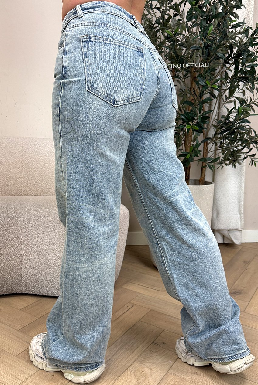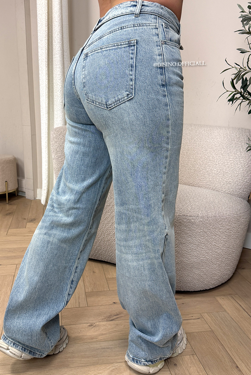 LIGHT BLUE - 'LAGUNA JEANS' - STRETCH HIGH WAIST WIDE LEG JEANS