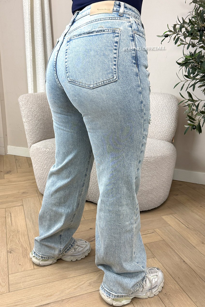 VINTAGE BLUE - 'MUNICH' - STRETCH FRONT RIPPED WIDE LEG JEANS