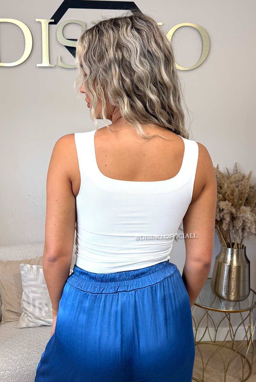 witte crop top dames, basic top met stretch, SKIMS geïnspireerde top, aansluitende witte top, DISINO top zomer, witte tank top