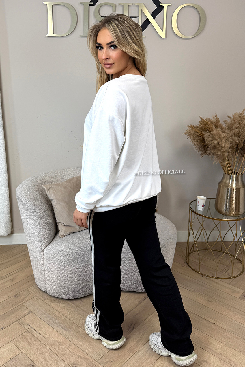 SWEATER WEATHER! Onze MILANO sweater in het wit is dé musthave voor jouw everyday look. De zachte cotton blend voelt heerlijk aan en de zwarte Milano-print maakt ‘m stijlvol en tijdloos. Perfect voor een dagje shoppen, een casual kantooroutfit of relaxte weekend vibes.