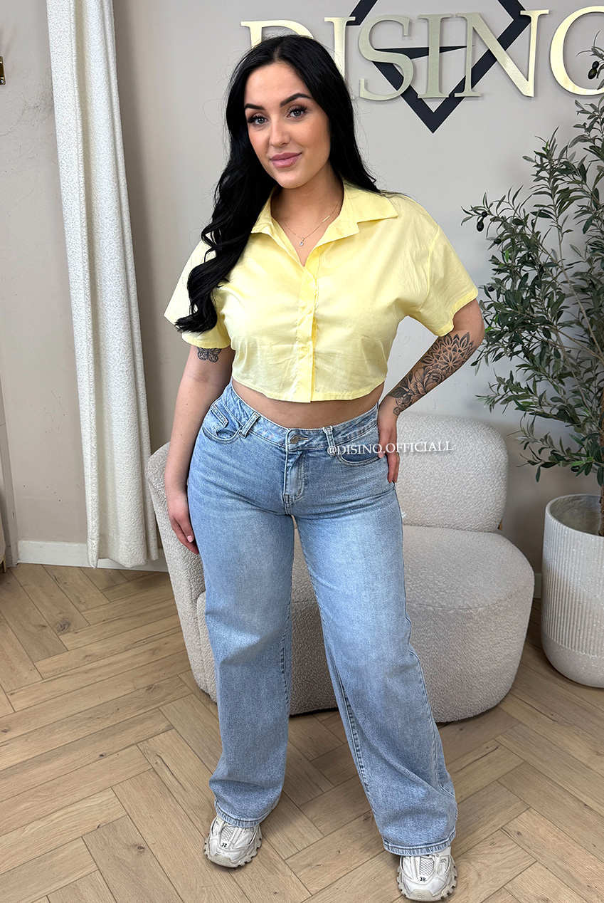 YELLOW - 'CARMEN BLOUSE' - OPEN BACK SHORT SLEEVE SHIRT